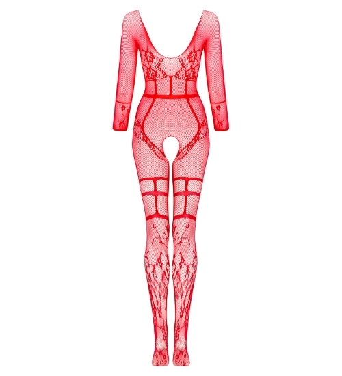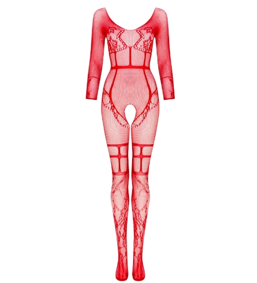 Červené bodystocking s dlouhým rukávem okouzlí kombinací elegance a smyslnosti. Jemná síťovina s květinovým vzorem zdůrazňuje ženskou postavu a dodává jí lehkost i půvab. Sytě červená barva přitahuje pohledy, symbolizuje vášeň, lásku a sebevědomí, díky čemuž je tento model ideální volbou pro intimní, výjimečné chvíle.