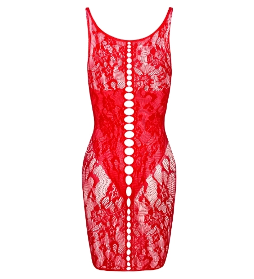 Červené šaty s otvory podél zad jsou vyrobené z pružného materiálu, který se dokonale přizpůsobí tělu, zdůrazňuje ženskou siluetu a poskytuje maximální pohodlí. Krajková struktura s romantickým květinovým vzorem jim dodává eleganci a lehkost, čímž vytváří spojení něhy s odvážným charakterem. Sytě červená barva přitahuje pozornost a vyzařuje sebevědomí, díky čemuž se každá žena bude cítit výjimečně.