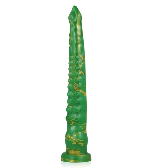 Dildo Zelené Chapadlo Chobotnice Epic spojuje umění, odvahu a moderní design. Jeho jedinečný, zeleno-zlatý povrch se třpytí ve světle a vytváří dojem hypnotické hloubky. Design inspirovaný mořskými tvory okouzlí detaily, které nejen přitahují pohled, ale zároveň poskytují intenzivní prožitky. Měkký, pružný silikon s hedvábnou texturou zajišťuje maximální pohodlí a přirozené přizpůsobení, zatímco směrem dolů se rozšiřující tvar usnadňuje zavádění a umožňuje postupné, příjemné objevování nových pocitů.