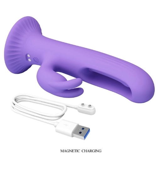 Multifunkční fialový vibrátor s přísavkou vyniká mezi ostatními erotickými hračkami moderním vzhledem a pokročilými funkcemi, které zaručují výjimečné potěšení. Je vyroben z měkkého, bezpečného silikonu prémiové kvality, který je příjemný na dotek a snadno se čistí. Díky vestavěné baterii funguje bezdrátově a magnetické nabíjení přináší maximální pohodlí a komfort při používání.