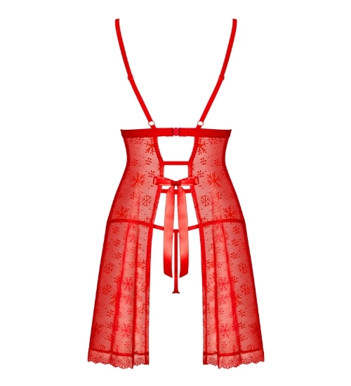 Saty hříšné Mikulášky byly vytvořeny tak, aby vnesly do večera horkou vánoční magii. Jemná krajka zdobená vločkovým motivem a sváteční barva dodávají prádlu výjimečný charakter. Bílé bambulky umístěné nad ňadry přidávají roztomilý a sváteční šarm a třpytivá ozdoba pod prsy jemně podtrhuje smyslný styl prádla.