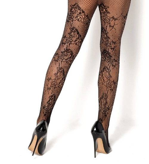 Síťované punčochy s kamínky okouzlují spojením jemné síťované struktury a elegantní kraječky. Delikátní květinové vzory podtrhují jejich smyslný charakter a připojený pás vytváří harmonický a působivý celek. Tento model vyniká moderním stylem a precizním zpracováním, díky čemuž působí výjimečně žensky v každém outfitu.