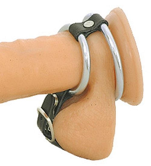 Kovové kroužky na penis. Dokonale ozdobí váš penis a udrží erekci. Prsteny jsou spojeny koženým páskem. Spona umožňuje libovolnou úpravu podle vašich potřeb.