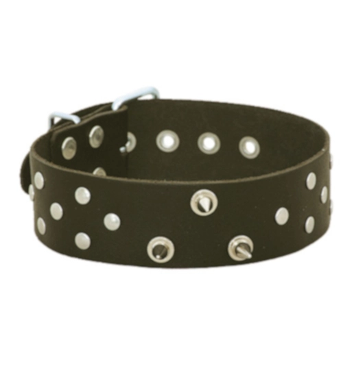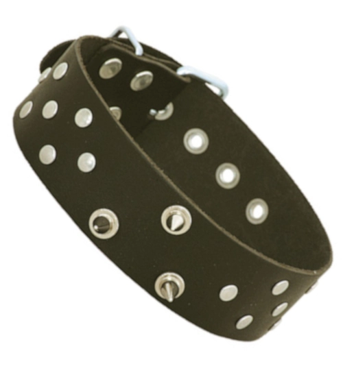 Zajímavý design, velmi dobré zpracování, nízká cena, výrobky výrobky Leder jsou nejlepší v této kategorii. Černý límec z hovězí kůže nejvyšší kvality. Zapínání pomocí přezek, které umožňují přizpůsobit velikost vašim potřebám. Byl nápadně zdobený četnými hroty a nýty.
