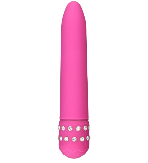 Pěkný vibrátor v růžové barvě, zdobený nápadnými krystaly. Vibrátor je dokonale je ideální jako dárek, krásně zabalené velmi dobře ideální dárek. Vibrátor je vodotěsný abyste si s ním mohli hrát ve sprše. Vibrace se ovládají pomocí kolečka. Elegantní, tichý vibrátor za atraktivní cenu.