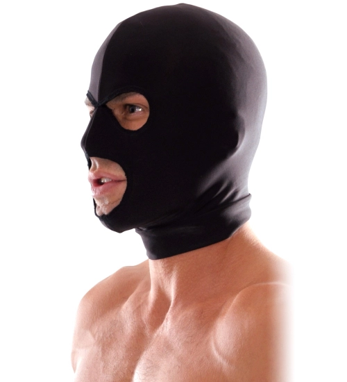 Pohodlná maska v černé barvě s třemi praktickými otvory. Je vyroben z lehké a pružné tkaniny, aby se dobře přizpůsobila tvaru hlavy a umožnila pokožce volně dýchat. Navíc se velmi snadno nasazuje.