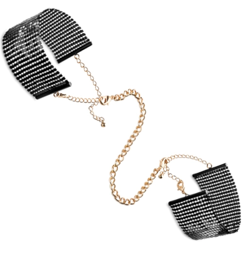 Stylová pouta jsou elegantní kombinací černých náramků a odnímatelný zlatý řetízek. Ideální pro pikantní večer nebo jako doplněk k elegantnímu oblečení. Doporučujeme pro ty, kteří chtějí do svých her přidat elegantní neslušnost. Baleno v elegantním obalu.
