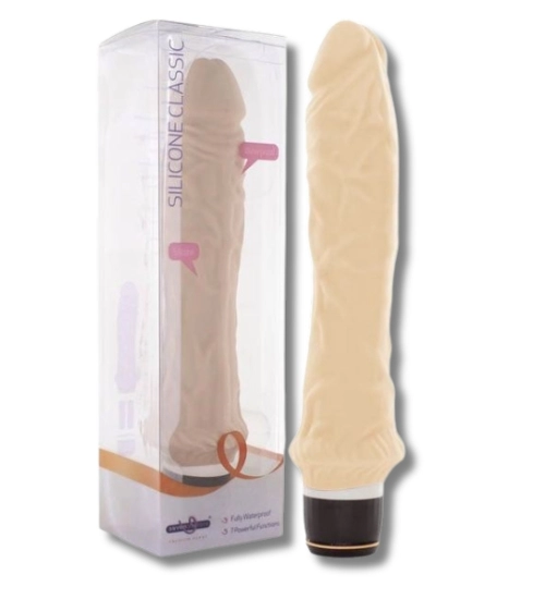 Jedinečný silikonový vibrátor s anatomickým tvarem, který dokonale padne do pochvy a zvyšuje vzrušení. Výrobek je vyroben z pružného materiálu, takže dokonale imituje mužský úd. Kromě toho jeho velké rozměry a výrazné žilky a prohlubně na povrchu ještě více zintenzivní stimulaci.