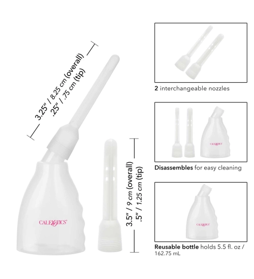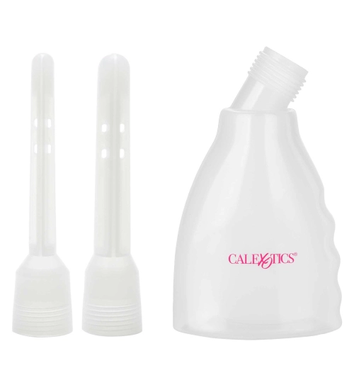 Sada pro intimní hygienu. Nepostradatelné pro anální laskání. Skládá se z pumpičky a dvou vyměnitelných koncovek v běžném a úzkém provedení.