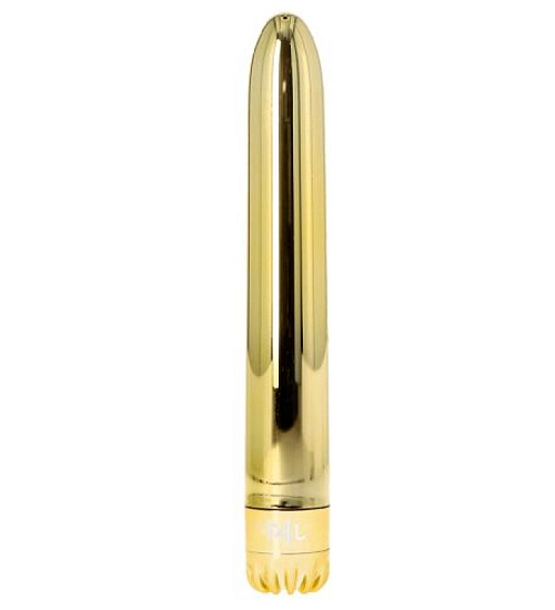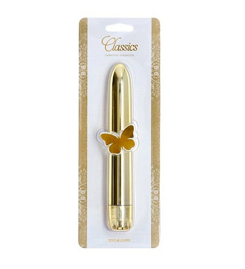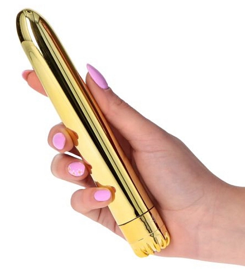 Klasické, štíhlý vibrátor ve výrazné zlaté barvě. Je vyroben z hladkého plastu bezpečného pro tělo.