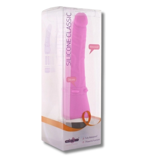 Anatomicky tvarovaný vibrátor s klasickým designem. Má tvar mužského penisu a dokonale se vejde do pochvy. Výrobek je vyroben z materiálu příjemného na dotek lékařského silikonu. Materiál je pro tělo zcela bezpečný, což zaručuje bezpečnost a pohodlí při používání.