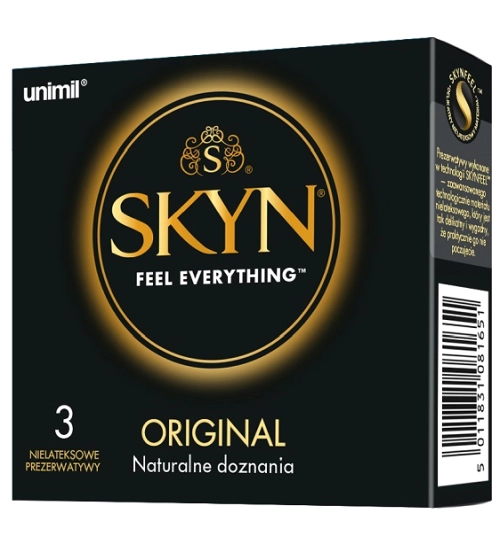 Unimil Skyn jsou inovativní kondomy vyrobené z nelatexového materiálu zvaného polyisopren. Tento plast neobsahuje přírodní kaučukový latex, díky čemuž je měkčí a jemnější na dotek.