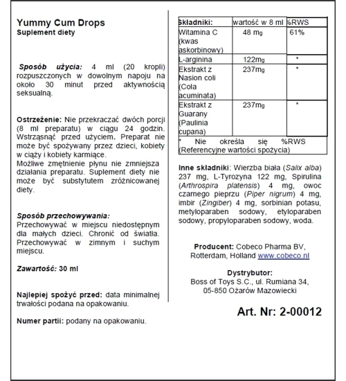 Připravte se na chutné hry! Vaše žena nepřijímá chuť nebo vůni spermatu? Chcete tomu zabránit? Vyzkoušejte jedinečné kapky pro zlepšení kvality, chuti a objemu vašeho spermatu. Yummy Cum je bezpečný doplněk stravy vyrobený na bázi přírodních látek. Pomůže vám přesvědčit partnerku, aby si zahrála erotické hry, o kterých nebyla přesvědčená.