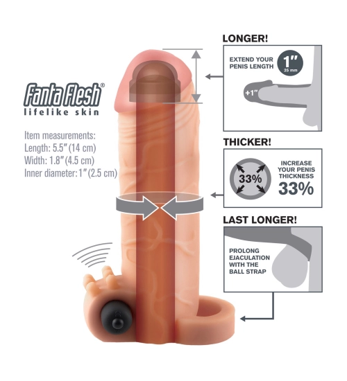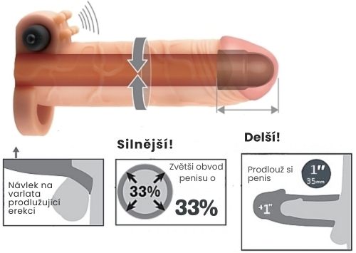 Nástavec je anatomicky tvarovaný. Materiál je pružný, takže se přesně přizpůsobí tvaru penisu. Uzávěr vám umožní prodloužit penis o 5,1 cm a zvětšit jeho obvod o 33 %. Partnerovi to přinese intenzivní potěšení a vy se zbavíte komplexů.