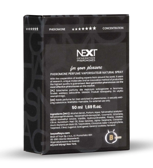 Takto vytvořená kompozice je ideální a moderní vůní pro každou příležitost. Feromony jsou velmi odolné – stačí jen 2 střiky, abys se obklopil aurou touhy.
