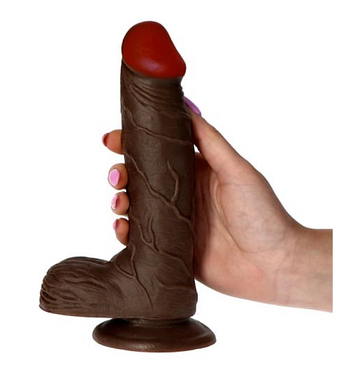 Realistické dildo ze silikonové hmoty příjemné na dotek. Materiál je 100% bezpečný pro tělo nezpůsobuje podráždění ani alergie.