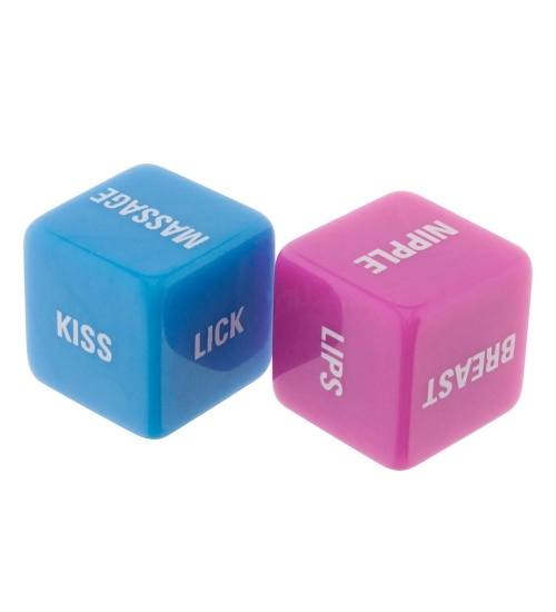 Sada dvou kostek obsahuje milostné úkoly pro partnery. V modré barvě obsahuje činnosti, které je třeba provést, tj. masáž, dotek, polibek, lízání, sání a překvapení (?). Na druhé straně růžové části těla, jako jsou rty (lips), krk (neck), bradavky (nipple), prsa (breast), pupek (pup) a překvapení (?).