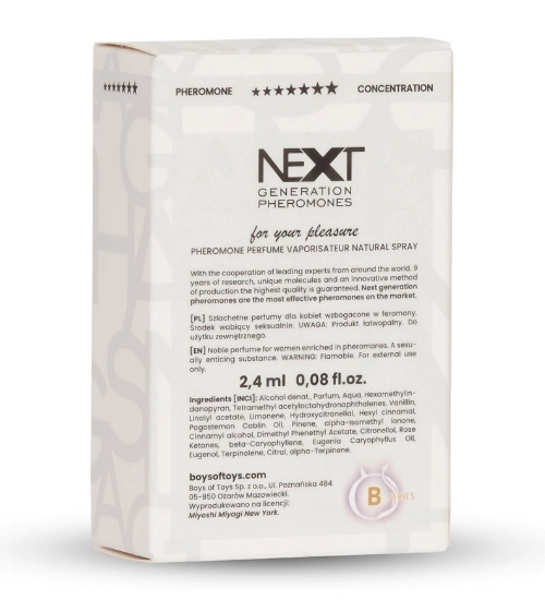 Pokud se chcete zbavit komplexů a zvýšit si sebevědomí – jste na správném místě! Další dámské feromony s mega koncentrovaným složením. Vytvořená vonná směs vytváří erotickou auru, která muže přitahuje. Toto jedinečné aroma tvoří tóny frézie, černého rybízu, růže a vanilky .