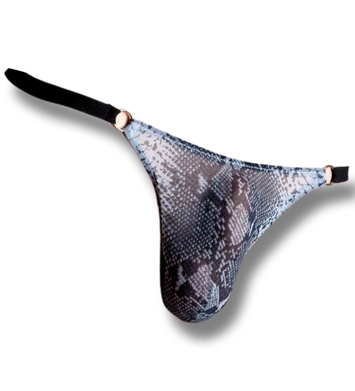 Pánská tanga s neobvyklým vzorem hadí kůže. Jsou vyrobeny z vysoce kvalitní tkaniny, která dokonale přiléhá k tělu.