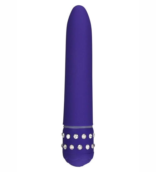 - klasický vibrátor s hladkým povrchem, krásně zdobená zirkony (délka: 15,5 cm, průměr: 2,5 cm);