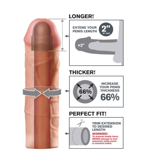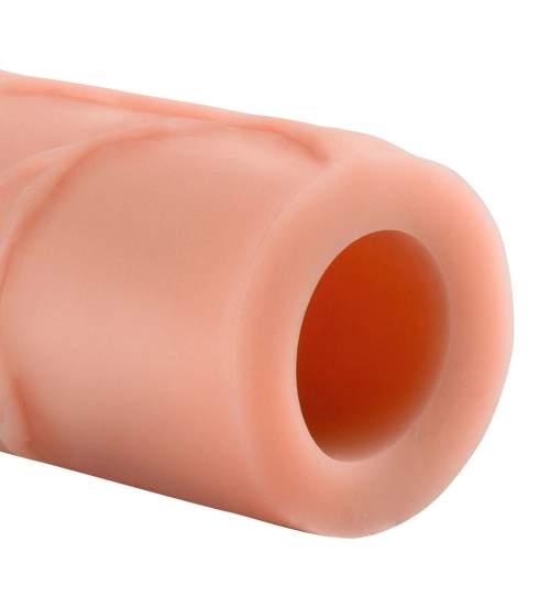 Překrytí je anatomicky profilované . Má silně definovaný žalud a četné žilky na povrchu, které zaručují jedinečnou stimulaci vnitřku pochvy. Navíc je velmi flexibilní a snadno se přizpůsobí jakékoli velikosti penisu. Díky němu prodloužíte svůj penis o 5 cm a zvětšíte jeho obvod o 66 % a zbavíte se tak komplexů.