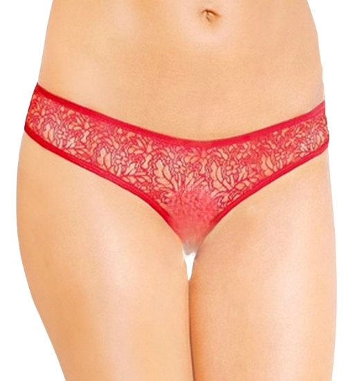 Krásné kalhotky ve vášnivé červené barvě. Jsou vyrobeny z jemného materiálu, který je příjemný na dotek. Zdobené smyslným květinovým vzorem.