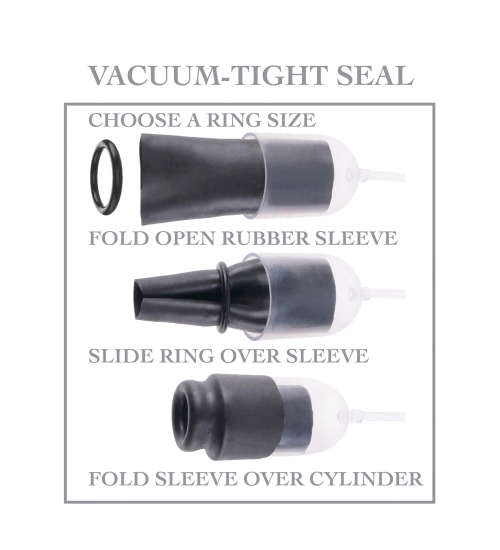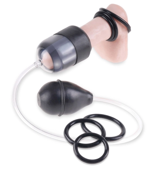 Masturbátor se skládá z stínítka na penisu, vybavený čerpací tryskou. S ním můžete vytvořit vakuum, které dokonale napodobuje orální styk. Díky přiloženému latexovému uzávěru můžete pomůcku přesně přizpůsobit velikosti svého penisu.
