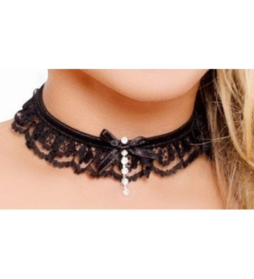 Jemný náhrdelník Nákrčník na gumičce, zavázané na zádech. Je zdobená jemnou krajkou a na přední straně má jemnou mašličku. Náhrdelník je velmi dobrý nápad pro dárek při mnoha příležitostech. Ideální pro Valentýn.