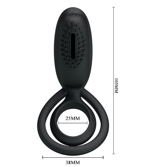 Vložte malý vibrátor do otvoru s výstupky. Stisknutím jeho horní části se spustí vibrace. Kroužek se přikládá na spodní část penisu. Máme na výběr z dva ráfky abyste jim mohli snadno přizpůsobit velikost svého penisu.