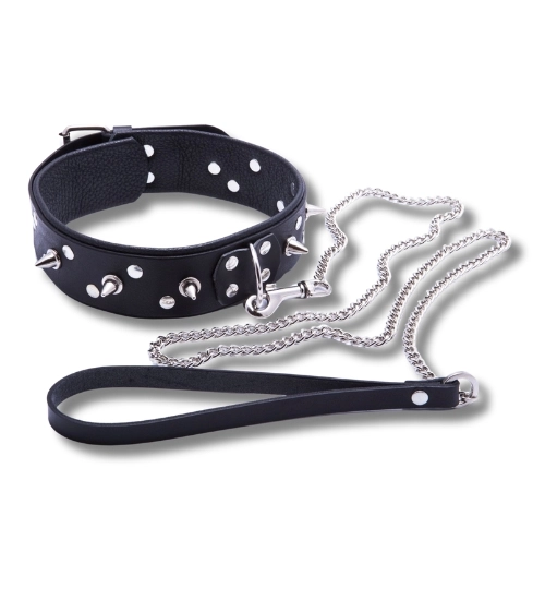 Nasaďte svému otrokovi obojek a staňte se pánem nebo dominantem. Vezměte svého otroka na procházku. Vyrobeno z kůže hovězí kůže příjemný na dotek a odolný. Vynikající kvalita, materiál a zpracování na nejvyšší úrovni. Verze VIP ! Klima sado-maso přidá kovové nýty a hroty. Řetízková šňůrka zakončená odnímatelnou karabinou.