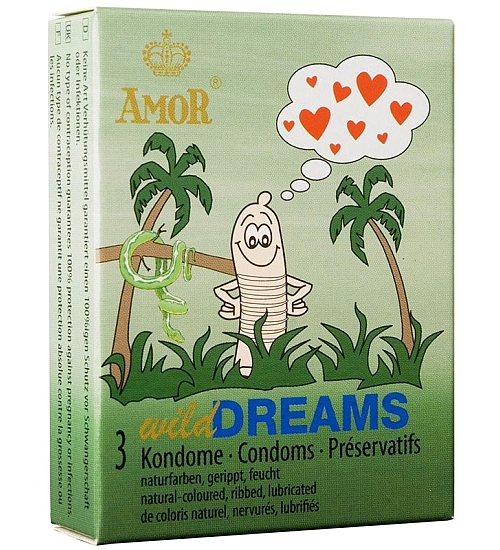 Kondomy Amor od společnosti Wild Dreams a jejich jedinečný tvar zaručují nadpozemský zážitek. Pruhované ztluštění masíruje vaginální stěny, takže partnerka pocítí skutečnou explozi rozkoše a dosáhne intenzivního orgasmu.