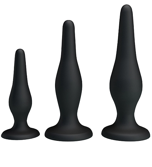 Sada anální kolíky v černé barvě. Pokud toužíte po análním uspokojení, pak je tato sada určena právě pro vás. Každá součást je vyrobena z vysoce kvalitních silikonu. Materiál je 100% bezpečný pro tělo, což je u tohoto typu hračky velmi důležité.
