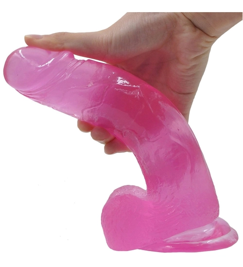 Realistické dildo s mírně zakřiveným tvarem má četné žilky, ztluštění, hladkou hlavičku a široký přísavka u kořene. Hrajte si s ním bez použití rukou a zažijte pohodlí při používání. Pružný materiál ze kterého je gadget vyroben, je zcela bezpečný bezpečné pro zdraví. Speciální tvarování poskytuje naturalistický zážitek.