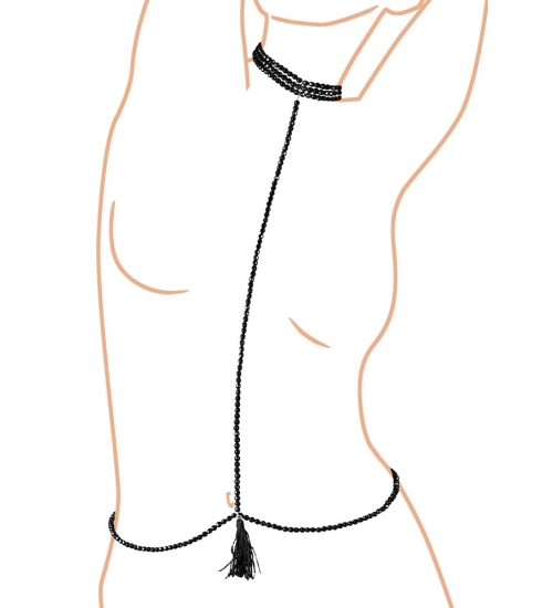 Řetěz složený z korálků v trojitém provedení bude krásně sedět na vašem těle a zdůrazní vaše sexy křivky. Korálky se zapínají vzadu a vytvářejí tak výjimečně elegantní vzhled krásný design obklopující vaše tělo. Černá barva perel lesklá povrchová úprava dělá gadget obzvláště elegantním.