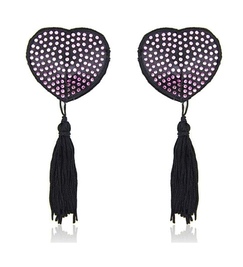 Jsou vyrobeny z vysoce kvalitního materiálu. Černá srdce lemovaná malými růžovými kamínky vás nadchne na první pohled. Bradavky mají černé držáky, které se při pohybu roztančí.