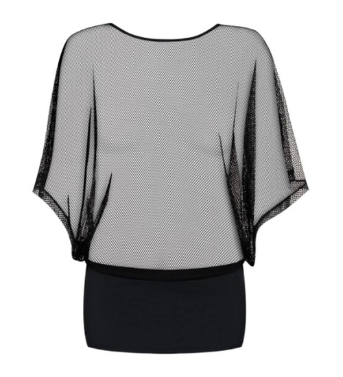 Vyrobeno z vysoce kvalitní materiály příjemně zahalí vaše tělo. Šaty se skládají z horní části ze smyslné síťoviny a spodní části v podobě minisukně minisukně. Oblečte si pod něj své oblíbené spodní prádlo a směle vyrazte ven na večírek nebo si neobléknout nic a předvést se partnerovi v celé své kráse. Zajímavě střižené rukávy sukně ve tvaru netopýra dodává šatům půvab a činí je velmi elegantními. Průhledný materiál přivede každého muže k šílenství!