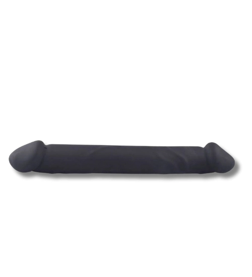 Umělý dvojitý penis v černá. Vyrobeno z silikonu zajišťuje bezpečnou aplikaci a sametový povrch. Snadno se čistí - stačí ji umýt teplou vodou a jemným mýdlem.