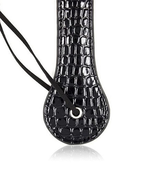 Výjimečně elegantní gadget z rodiny BDSM . Hůl je vyrobena z ekologické kůže s vyraženým krokodýlím vzorem. Krásná černá barva a aerodynamický tvar jsou dalšími přednostmi produktu.