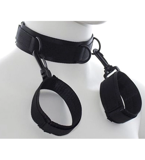 Obojek by měl být umístěn kolem krku a pouta by měla být utažena na zápěstích. Výrobek je vyroben z černého nylonu . Umožňuje upravit velikost. Rozhodněte se zpestřit svůj sexuální život ještě dnes!