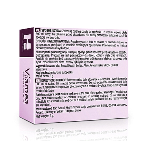 Jedná se o produkt vyrobený z přírodních rostlinných složek , který zajišťuje bezpečné použití. Mohou jej užívat ženy všech věkových kategorií. Jedná se o doplněk stravy , který si poradí s vaším nízkým libidem a obnoví vaši touhu po erotickém životě. Mnoho žen trpí sníženým libidem a nedostatkem spokojenosti se sexuální aktivitou. Viamea působí jako afrodiziakum. Jde o osvědčený způsob, jak se rychle zbavit problému a oživit váš vztah. Překvapte svého partnera v ložnici a budete se cítit jako na prvním rande!