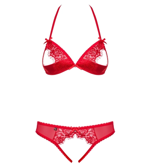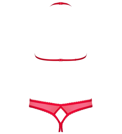 Nádherný erotický set v krásné, šťavnaté barvě. Odvažte se nosit vyzývavou otevřenou podprsenku . Set má nastavitelná ramínka. Hravě se zapíná kolem krku . Lehce vyztužené košíčky dokonale zdůrazní poprsí. Pozvěte svou partnerku na erotické dobrodružství v tangách s otevřeným rozkrokem .