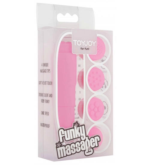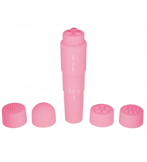 Kompaktní masážní přístroj má 1 stupeň vibrací. Můžete si vybrat ze čtyř vyměnitelných podložek s různými texturami. Zařízení je vyrobeno z materiálů bezpečných pro tělo. Vyměnitelná víčka jsou vyrobena ze silikonového materiálu, takže nezpůsobují podráždění pokožky ani alergie. Vše v růžové barvě.