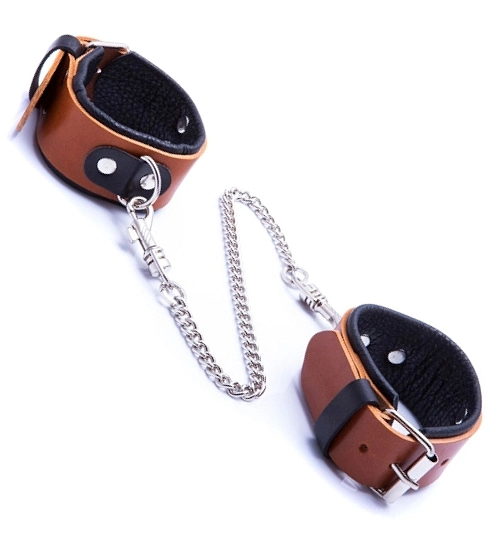 Pouta jsou vyrobena z měkké přírodní kůže koňakové barvy. Mají stylové černé doplňky a stříbrný řetízek, který je spojuje. Pouta vám umožní jejich snadné nastavení , můžete je odepnout a změnit jejich velikost na takovou, která vám vyhovuje. Vyberte si styl a eleganci i při zábavě. Perfektní ve stylu s promiskuitním spodním prádlem !