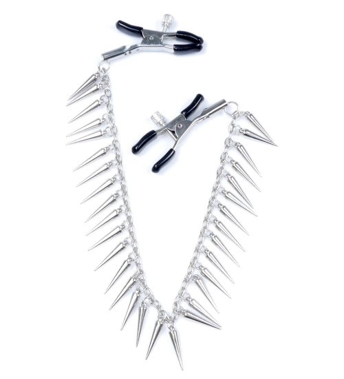 Stříbrné špičaté cvočky  dodávají gadgetu skutečně pikantní vzhled , který ozdobí vaše ňadra při odvážných hrách.