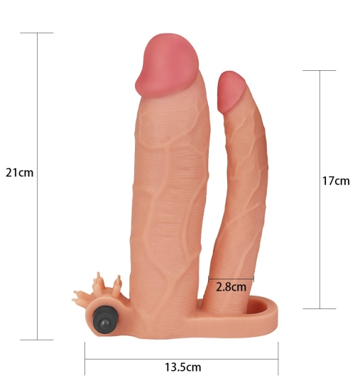 První ze dvou penisů je dutá protéza , díky které člen získává o 50 % větší obvod a až 7,5 cm navíc na délce!