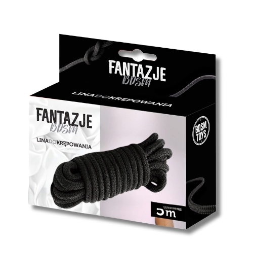 Pevné černé lano bondage je vyrobeno z bavlny, takže je příjemné na dotek, nebude bolet na těle a zajistí vaše vzájemné pohodlí během propité noci. Jeho délka je až 5 m , což poskytuje prakticky neomezený prostor pro uvázání vašeho partnera.