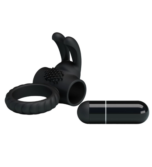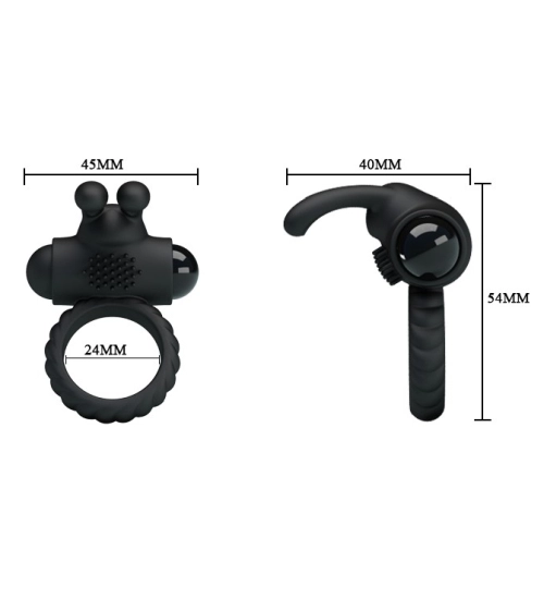 Stisknutím jednoduchého tlačítka nastartujete motor, čímž se celý prstenec rozvibruje. To je další stimulace pro vás a vašeho partnera . Dva výstupky ve tvaru ucha dokonale přenesou vibrace do klitorisu  a donutí ženu šílet rozkoší! Perforace v horní části překryvu vám poskytne další tření a povzbudí vás, abyste pokračovali ve hře.