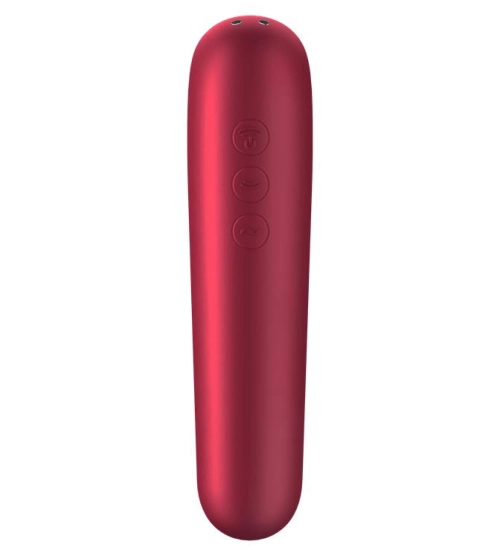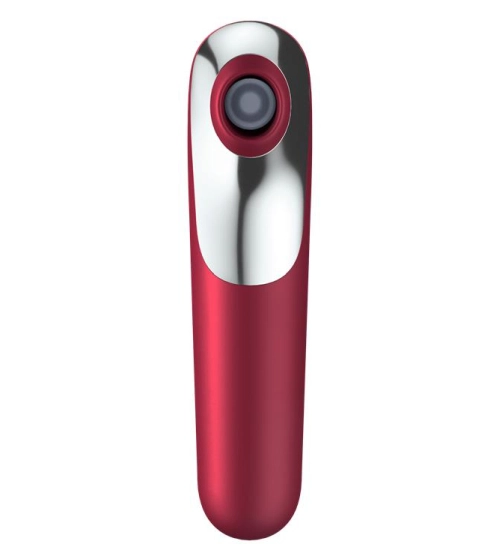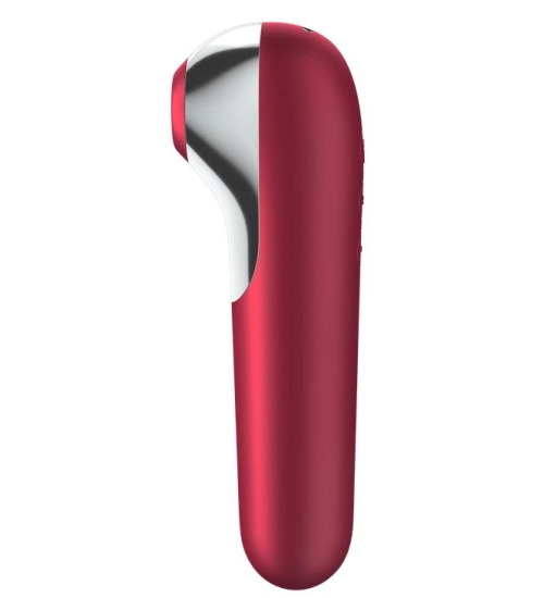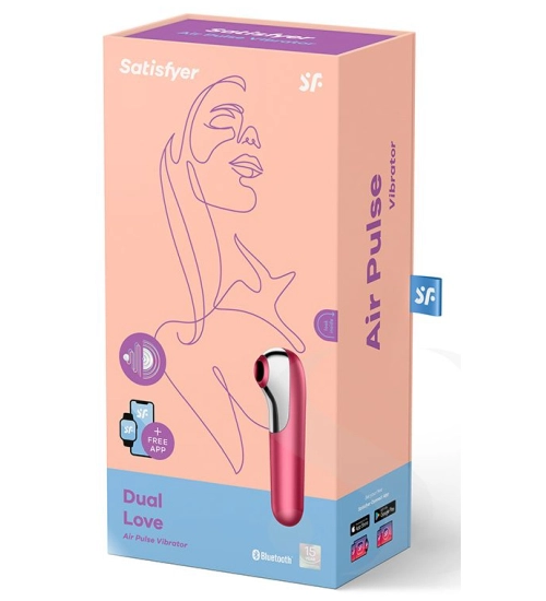 Červený vibrátor má zaoblenou špičku, což umožňuje intenzivní vnitřní vaginální masáž. Otvorem na druhém konci miniaplikace se nachází klitorisu díky vzduchovým vlnám. Oba konce jsou napájeny samostatné motory, abyste měli na výběr 11 provozních režimů. Vibrátor Dual Love lze používat pomocí tlačítek na výrobku nebo ovládat pomocí pomocí bezplatné aplikace Satisfyer Connect, který je k dispozici pro Android, iOS a Apple Watch.