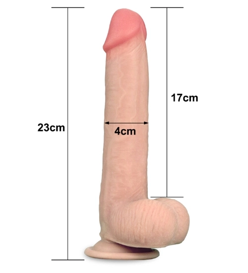 Disponuje silnou přísavkou , kterou můžete připevnit na jakýkoli hladký povrch, aniž byste se museli bát, že se během hry uvolní. Délka celého dilda včetně varlat je 23 cm, přičemž samotná užitná část má 17 cm a průměr 4 cm, díky čemuž vás až po okraj naplní sladkým potěšením.
