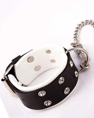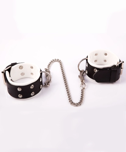 Kůže je upevněna nýty a prošíváním a ozdobným prvkem celku je lesklé kameny umístěné mimo. Manžety jsou v malá velikost, které lze nastavit pomocí přezek. Díky elegantnímu balení se skvěle hodí jako pro milovanou osobu. Mohou také sloužit jako pozvánka k BDSM hrám.